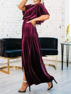 Women’s Christmas Dress Casual Dress Velvet Dress Long Dress Maxi Dress Ruched Split Outdoor Christmas Daily Fashion Elegant Crew Neck Half Sleeve 2023 Loose Fit Black Wine Gold Color S M L XL Size