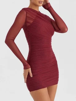 Women’s Christmas Dress Casual Dress Winter Dress Mini Dress Ruched Christmas Street Daily Active Fashion V Neck Long Sleeve 2023 Slim Black Burgundy Color S M L XL Size