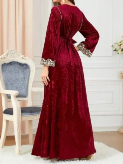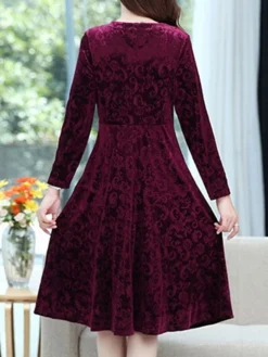 Women’s Casual Dress Velvet Dress Swing Dress Long Dress Maxi Dress Lace Embroidered Outdoor Christmas Daily Fashion Elegant V Neck Long Sleeve 2023 Loose Fit Wine Color M L XL XXL Size
