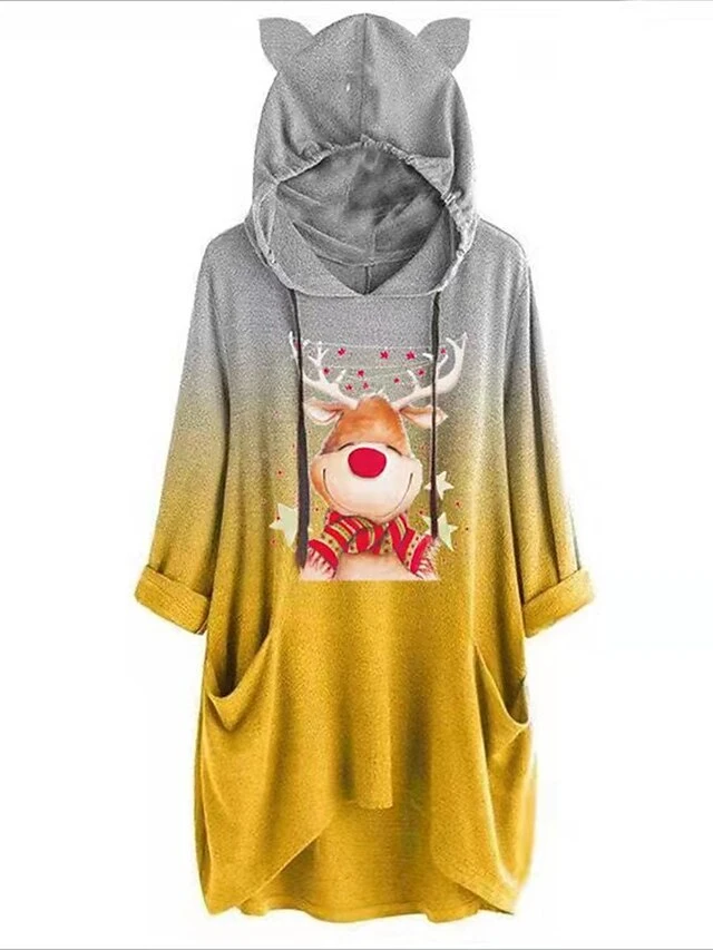 Women’s Casual Dress Christmas Dress Hoodie Dress Ombre Deer Pocket Print Hooded Mini Dress Active Fashion Outdoor Christmas Long Sleeve Loose Fit Yellow Pink Orange Fall Winter S M L XL XXL