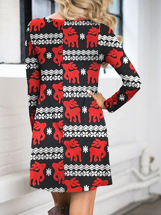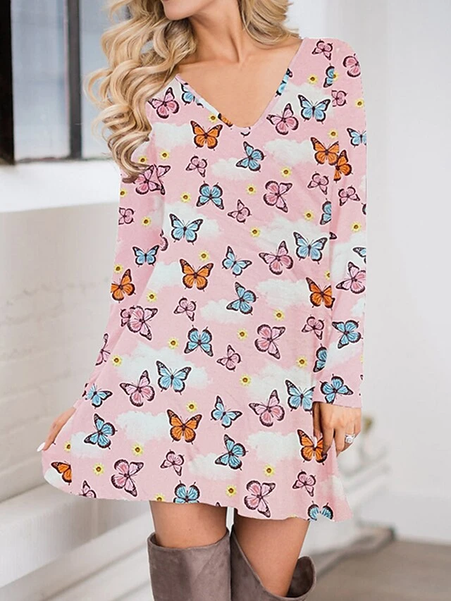 Women’s Casual Dress Christmas Dress Sweatshirt Dress Butterfly Ugly Christmas Print Crew Neck Mini Dress Fashion Streetwear Christmas Street Long Sleeve Regular Fit Pink Red Fuchsia Fall Winter S M