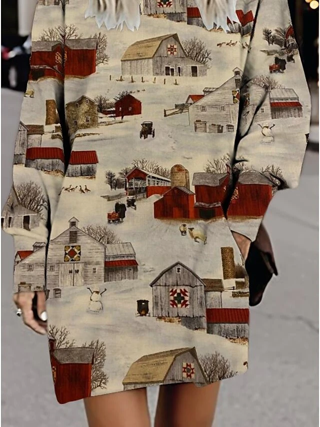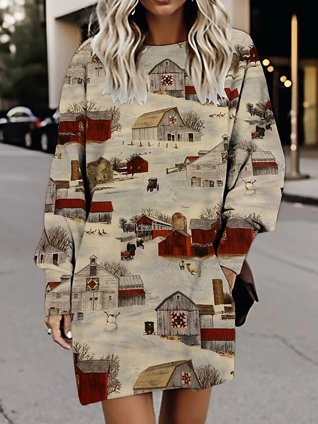 Women’s Casual Dress Christmas Dress Sweatshirt Dress Letter Snowflake Pocket Print Crew Neck Mini Dress Fashion Streetwear Outdoor Christmas Long Sleeve Loose Fit Wine Fall Winter S M L XL XXL