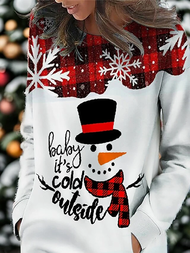 Women’s Casual Dress Christmas Dress Sweatshirt Dress Snowman Snowflake Pocket Print Crew Neck Mini Dress Fashion Streetwear Outdoor Christmas Long Sleeve Loose Fit Wine Fall Winter S M L XL XXL
