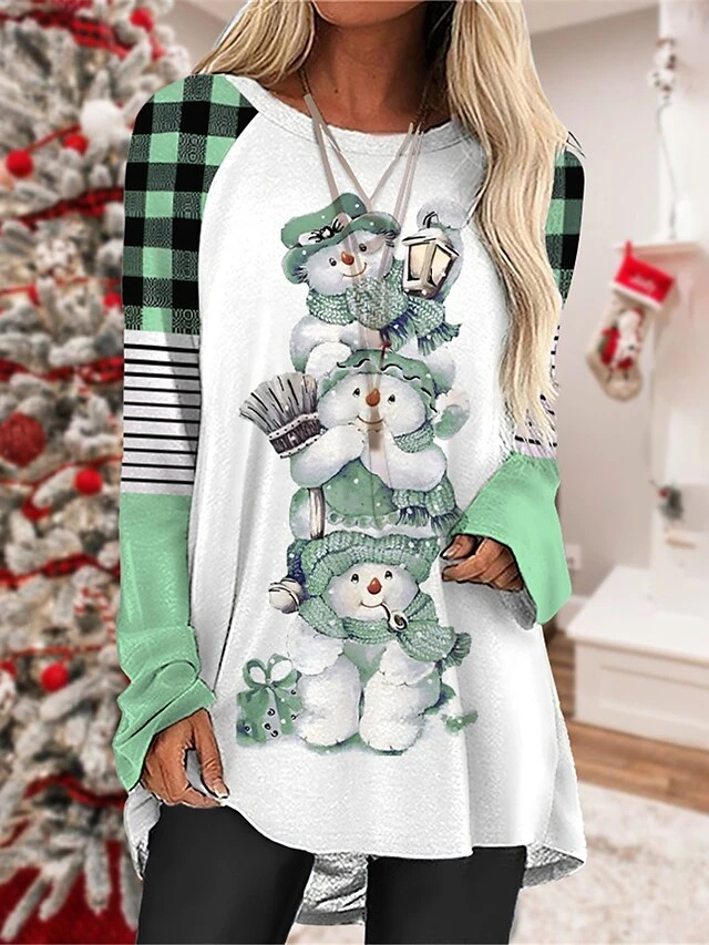 Women’s Casual Dress Christmas Dress T Shirt Dress Tee Dress Animal Plaid Print Crew Neck Mini Dress Fashion Streetwear Outdoor Christmas Long Sleeve Loose Fit Pink Blue Purple Fall Winter S M L XL
