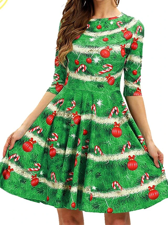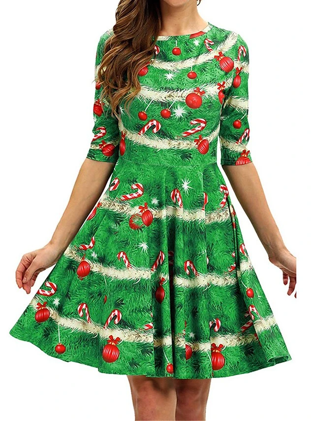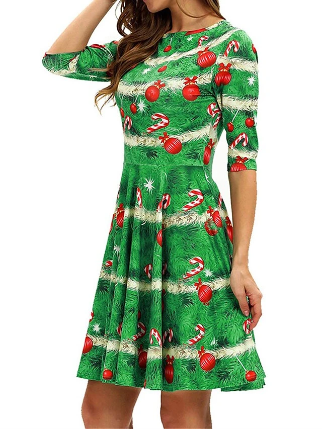 Women’s Casual Dress Christmas Dress T Shirt Dress Tee Dress Christmas Tree Ugly Christmas Print Crew Neck Mini Dress Fashion Modern Outdoor Christmas Half Sleeve Regular Fit Green Fall Winter S M L