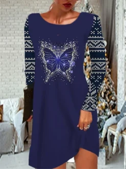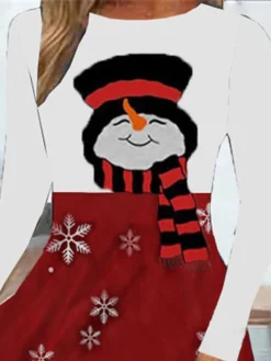 Women’s Casual Dress Christmas Dress T Shirt Dress Tee Dress Snowflake Print Crew Neck Mini Dress Fashion Streetwear Outdoor Christmas Long Sleeve Loose Fit Red Blue Fall Winter S M L XL XXL