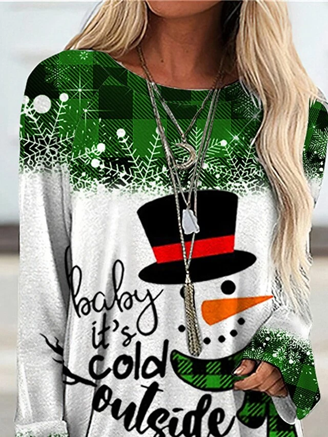 Women’s Casual Dress Christmas Dress T Shirt Dress Tee Dress Snowman Snowflake Print Crew Neck Mini Dress Fashion Streetwear Outdoor Christmas Long Sleeve Loose Fit Red Green Fall Winter S M L XL XXL