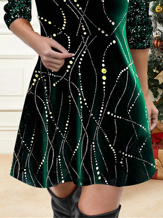 Women’s Casual Dress Christmas Dress Velvet Dress Geometric Sequins Patchwork Strap Mini Dress Fashion Streetwear Outdoor Christmas Long Sleeve Regular Fit Green Fall Winter S M L XL XXL