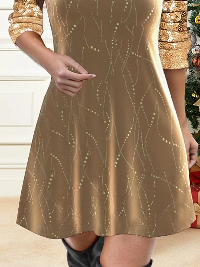 Women’s Casual Dress Christmas Dress Velvet Dress Geometric Sequins Patchwork V Neck Mini Dress Fashion Streetwear Outdoor Christmas Long Sleeve Regular Fit Gold Fall Winter S M L XL XXL