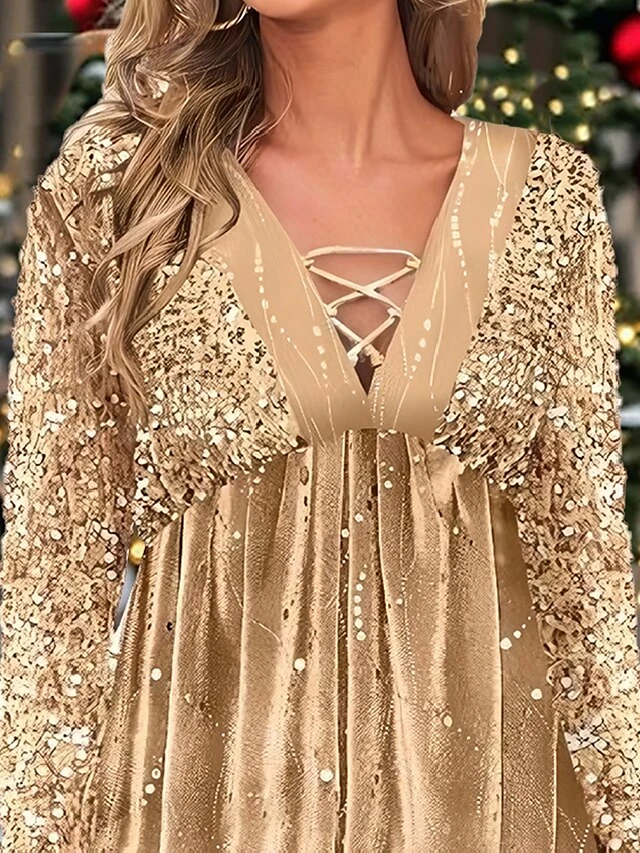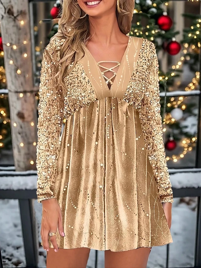 Women’s Casual Dress Christmas Dress Velvet Dress Polka Dot Sequins Cut Out V Neck Mini Dress Fashion Streetwear Christmas Street Long Sleeve Regular Fit Yellow Fall Winter S M L XL XXL