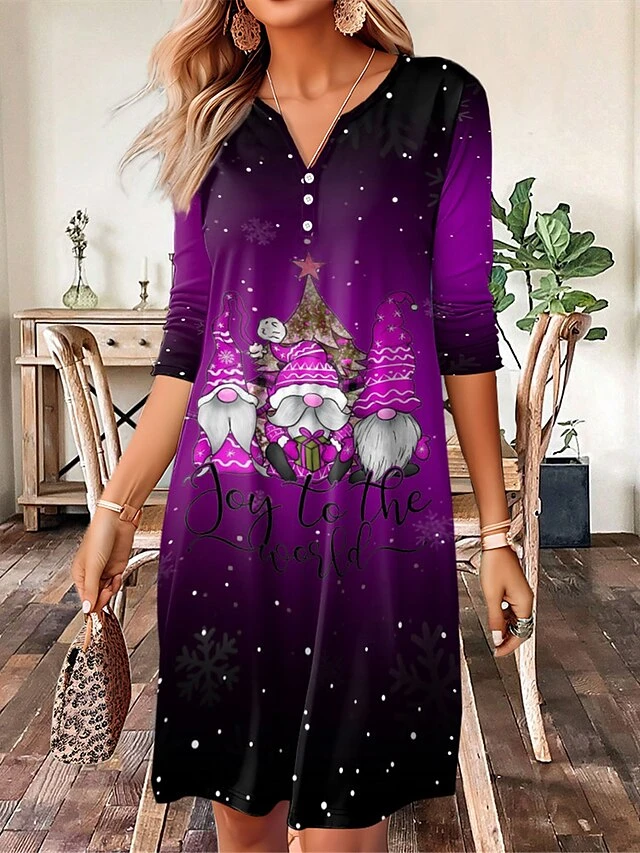 Women’s Casual Dress Christmas Dress Winter Dress Letter Santa Claus Button Print Split Neck Mini Dress Fashion Streetwear Outdoor Christmas Long Sleeve Loose Fit Wine Blue Purple Fall Winter S M L