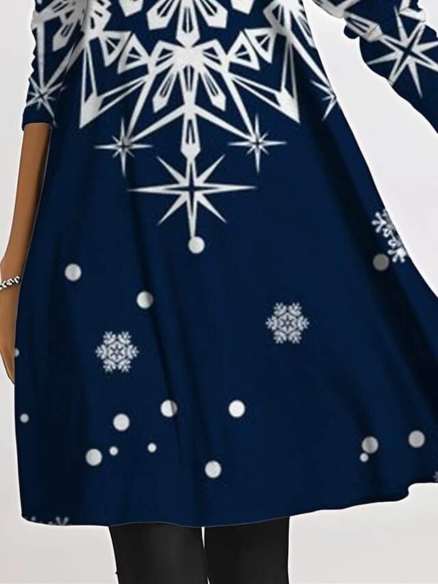Women’s Casual Dress Christmas Dress Winter Dress Snowflake Print Turtleneck Mini Dress Fashion Modern Outdoor Christmas Long Sleeve Regular Fit Navy Blue Fall Winter S M L XL XXL