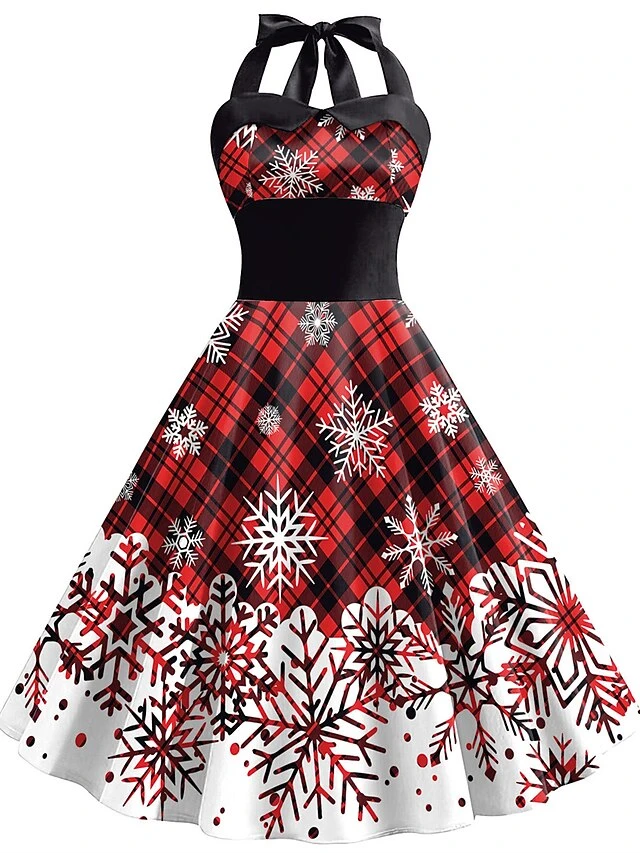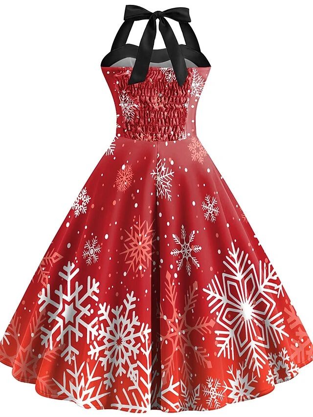 Women’s Casual Dress Christmas Dress Winter Dress Snowflake Ruched Bow Halter Neck Midi Dress Active Fashion Outdoor Christmas Sleeveless Regular Fit Black Red Fall Winter S M L XL XXL