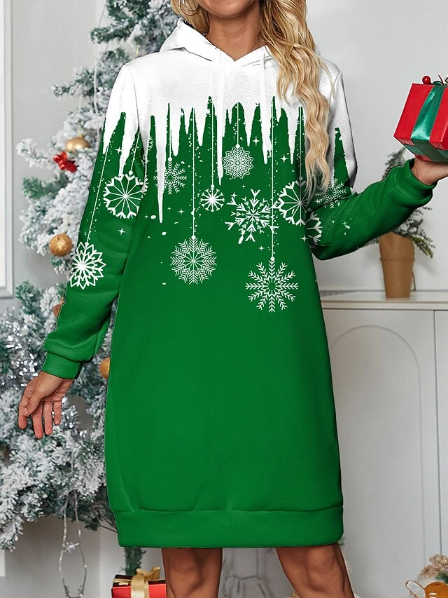 Women’s Casual Dress Hoodie Dress Mini Dress Warm Fashion Outdoor Christmas Holiday Hoodie Print Snowflake Loose Fit Red Navy Blue Blue S M L XL XXL