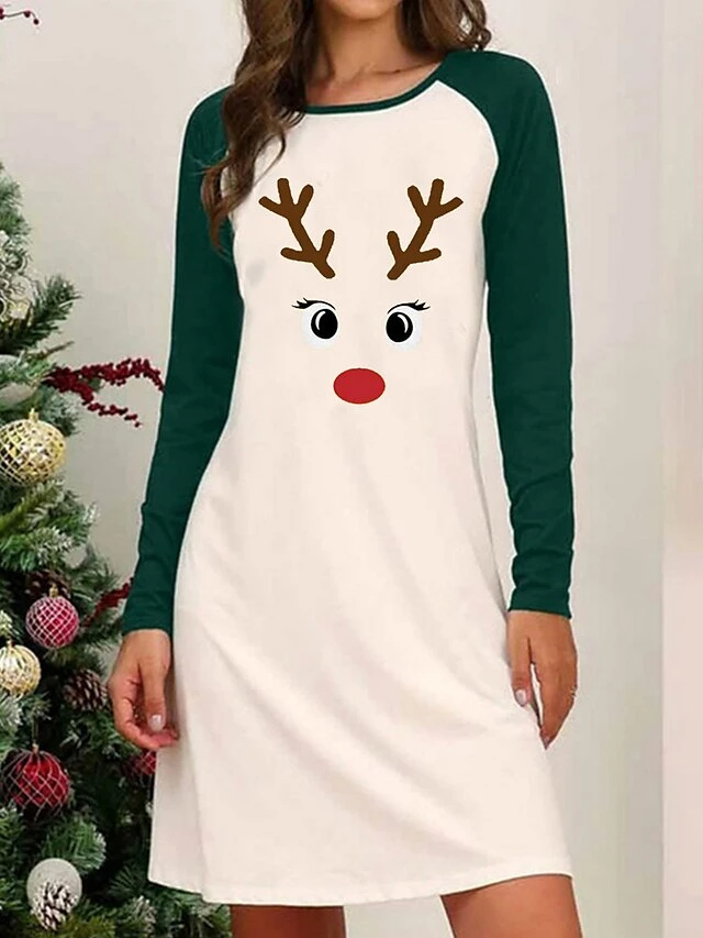 Women’s Casual Dress Print Dress Floral Patchwork Print Crew Neck Mini Dress Active Fashion Outdoor Christmas Long Sleeve Loose Fit Wine Red Blue Fall Winter S M L XL XXL