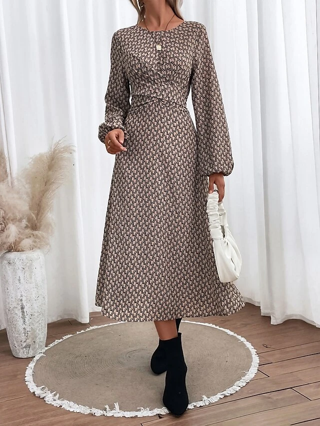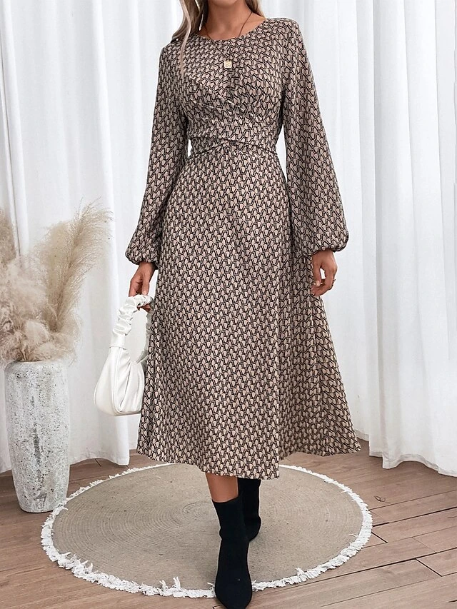 Women’s Casual Dress Sheath Dress A Line Dress Graphic Print Crew Neck Midi Dress Active Fashion Outdoor Christmas Long Sleeve Regular Fit Black Fall Winter S M L XL