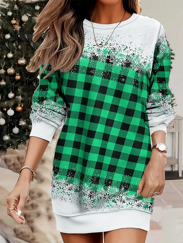 Women’s Casual Dress Sweatshirt Dress Mini Dress Warm Fashion Outdoor Christmas Vacation Crew Neck Print Geometric Loose Fit Red Burgundy Blue S M L XL XXL