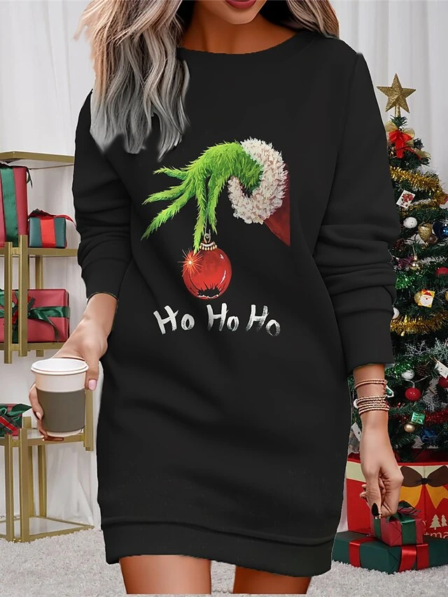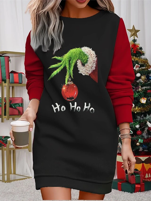 Women’s Casual Dress Sweatshirt Dress Mini Dress Warm Fashion Outdoor Christmas Vacation Crew Neck Print Geometric Print Monster Loose Fit Black Red Burgundy S M L XL XXL