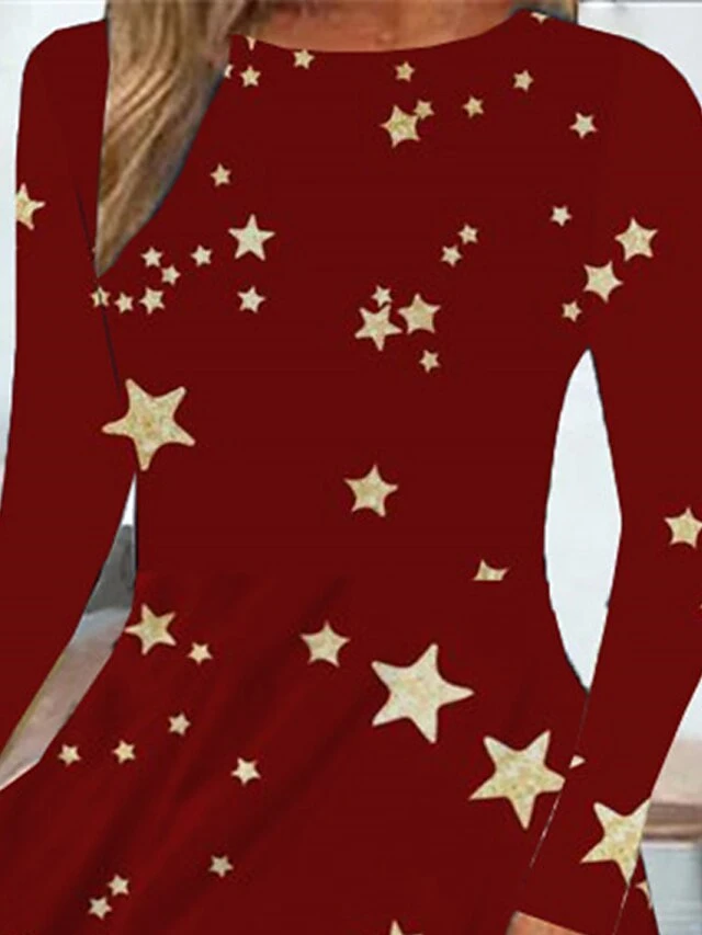 Women’s Casual Dress Swing Dress Midi Dress Wine Long Sleeve Star Pocket Winter Fall Spring Crew Neck Fashion Christmas Daily Weekend 2022 S M L XL XXL 3XL