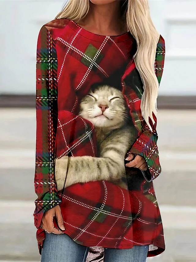 Women’s Casual Dress T Shirt Dress Tee Dress Shift Dress Mini Dress Wine Long Sleeve Animal Print Winter Fall Spring Crew Neck Fashion Christmas Daily 2022 S M L XL XXL 3XL