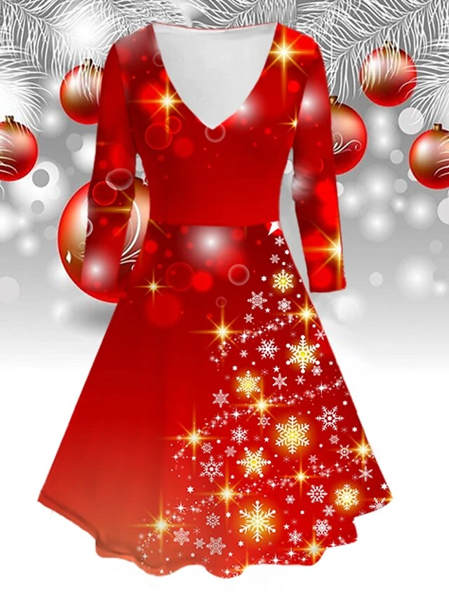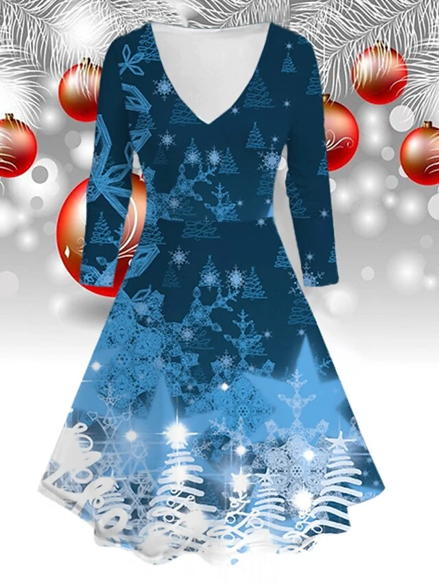 Women‘s Christmas Blue Red Long Sleeve Elk Print Winter Autumn V Neck Fashion Daily Weekend Loose Fit 2022 S M L XL 2XL 3XL 4XL 5XL 6XL
