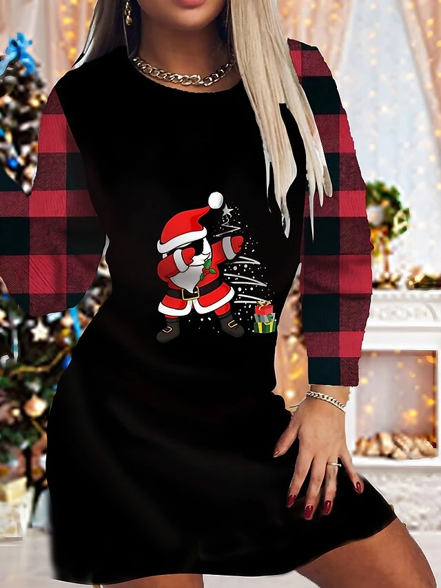 Women’s Christmas Bodycon Print Dress Mini Dress Wine Red Black Long Sleeve Elk Tree Snowflake Print Winter Autumn Crew Neck Fashion Casual 2022 S M L XL 2XL 3XL 4XL 5XL 6XL