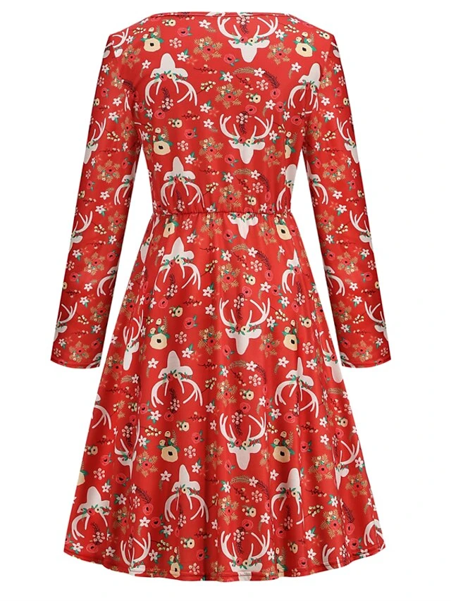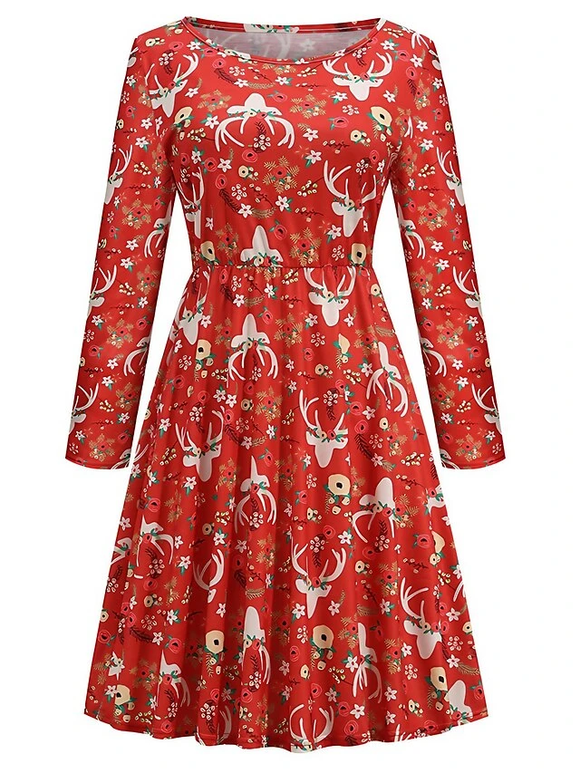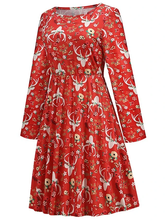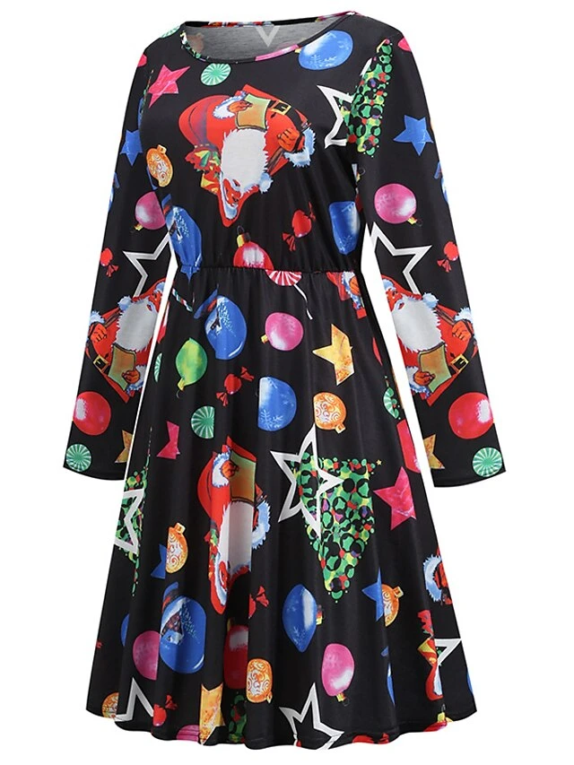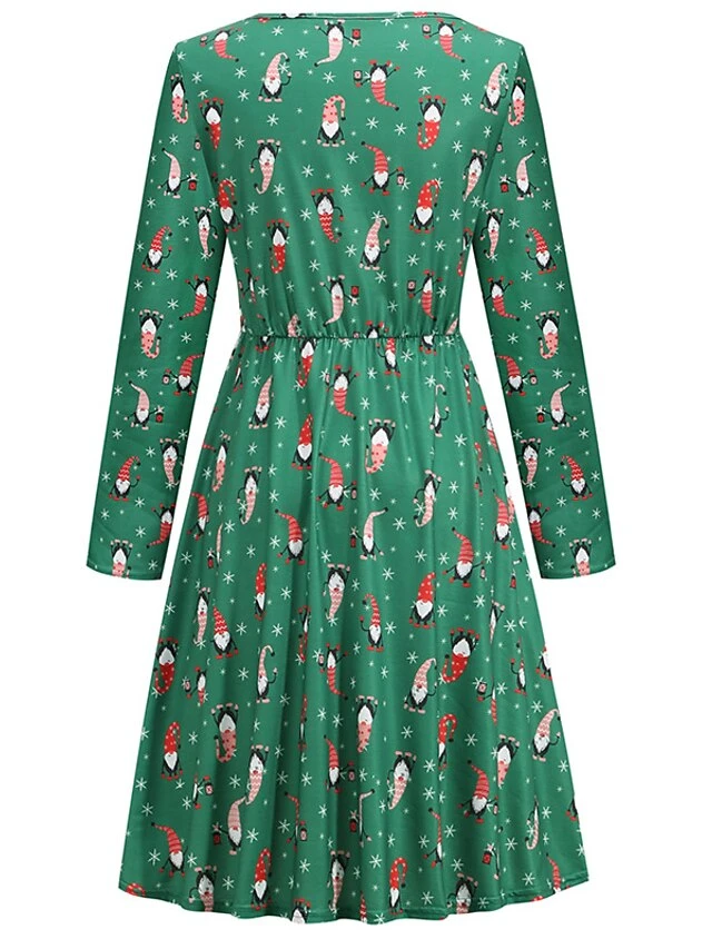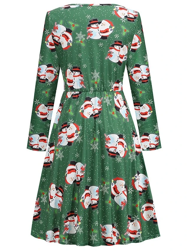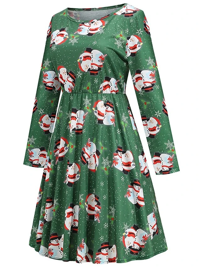 Women’s Christmas Casual Dress Green Black Blue Long Sleeve Santa Claus Print Winter Fall Autumn Crew Neck Modern Daily Vacation 2022 S M L XL XXL