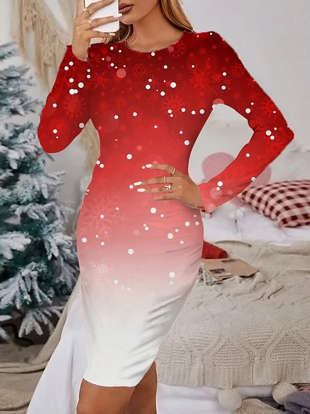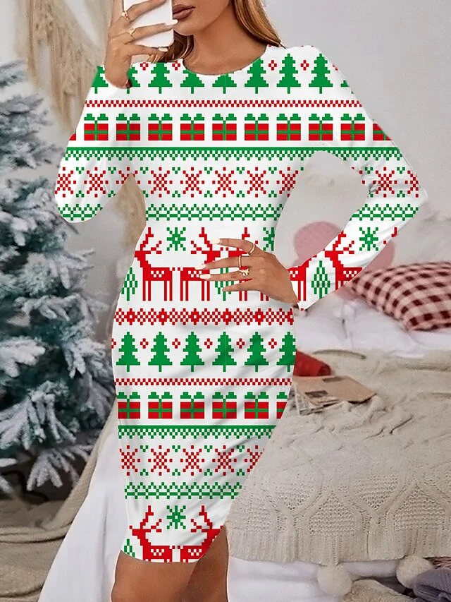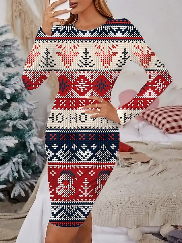 Women’s Christmas Casual Dress Print Dress Blue Light Red Red White Black Long Sleeve ElkTree Snowflake Print Winter Autumn Crew Neck Fashion Casual Fall Dress 2022 S M L XL 2XL 3XL 4XL 5XL 6XL