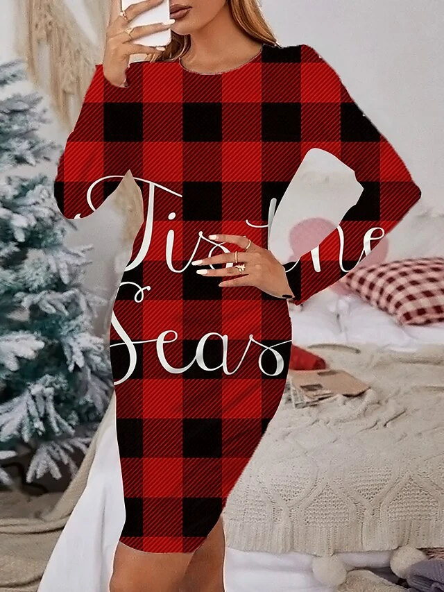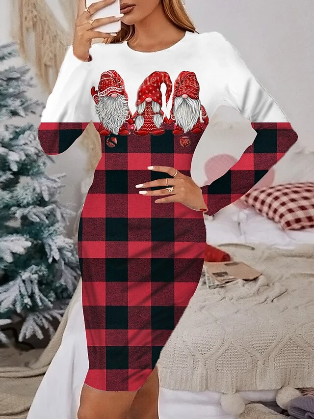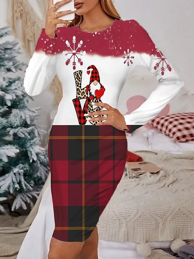 Women’s Christmas Casual Dress Print Dress Wine Light Red Red Gray White Long Sleeve ElkTree Snowflake Print Winter Autumn Crew Neck Fashion Casual Fall Dress 2022 S M L XL 2XL 3XL 4XL 5XL 6XL