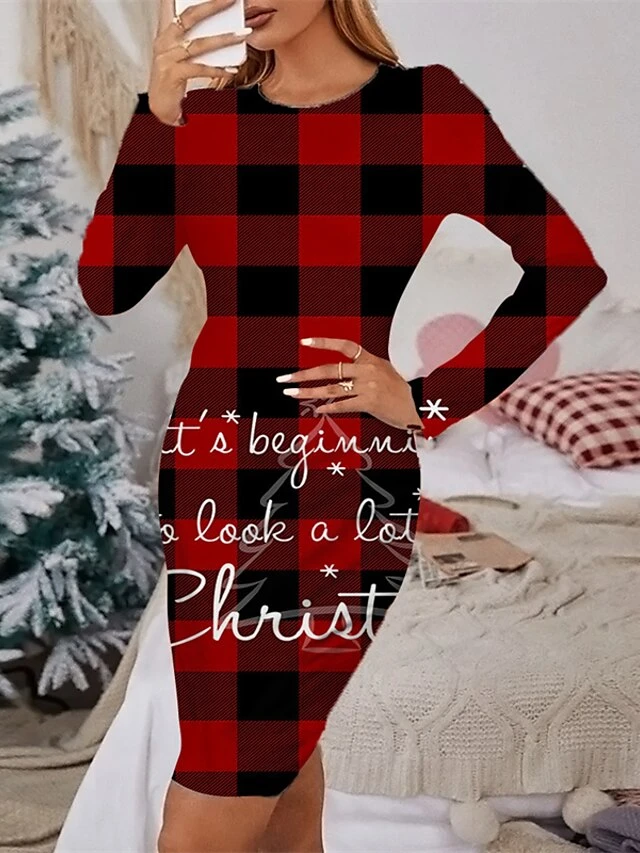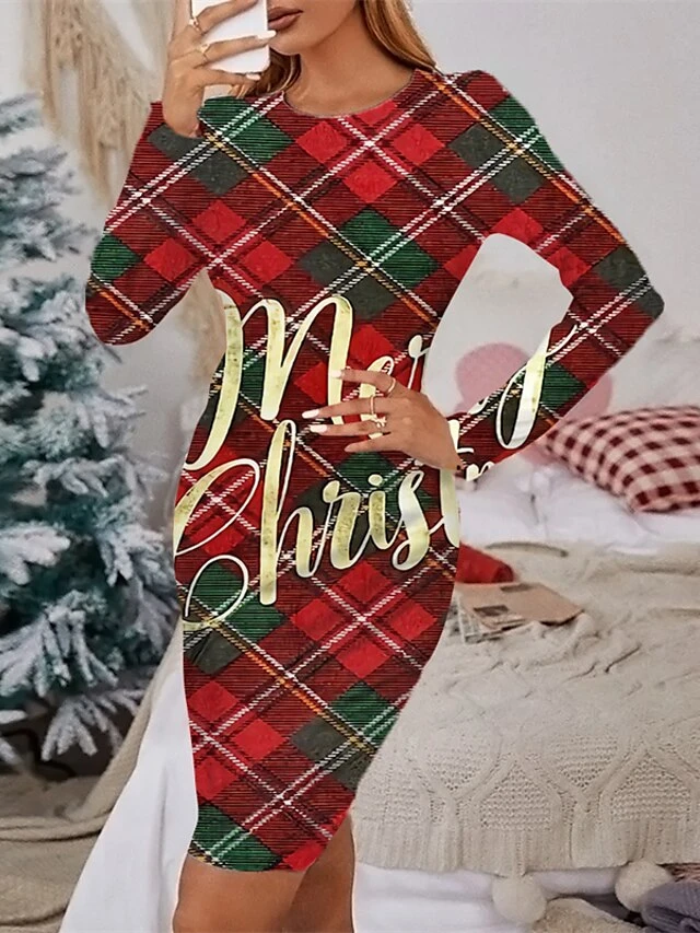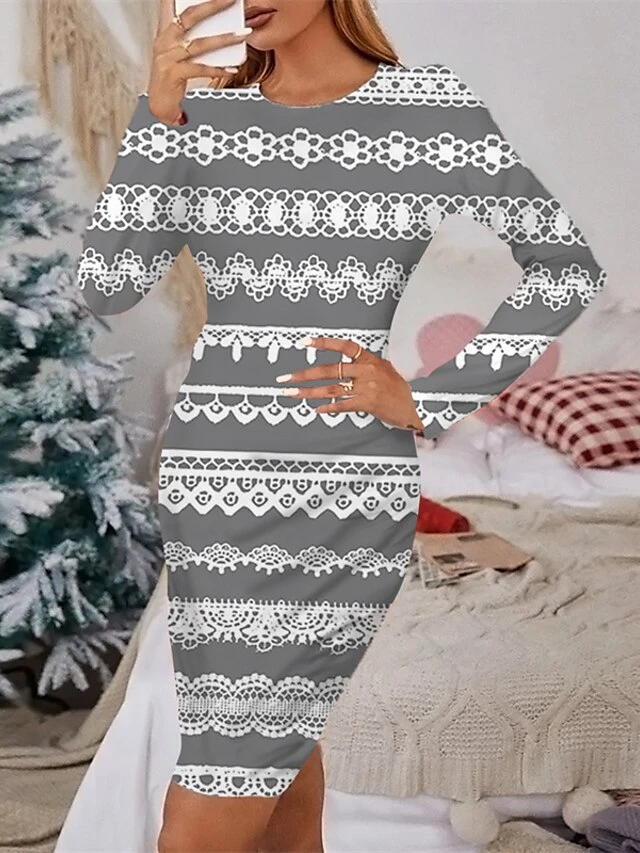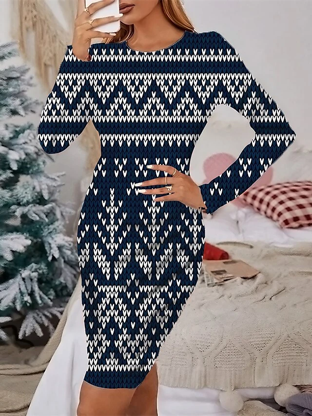 Women’s Christmas Casual Dress Sheath Dress Mini Dress Green Red Navy Blue Gray Black Long Sleeve Print Print Winter Fall Crew Neck Stylish Casual 2022 S M L XL 2XL 3XL 4XL 5XL 6XL
