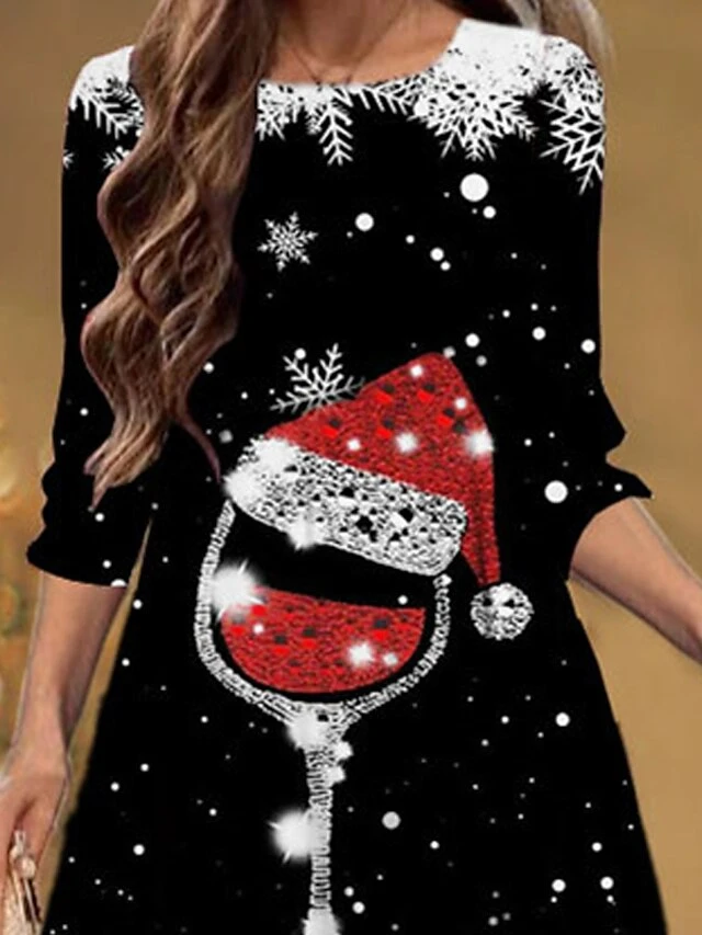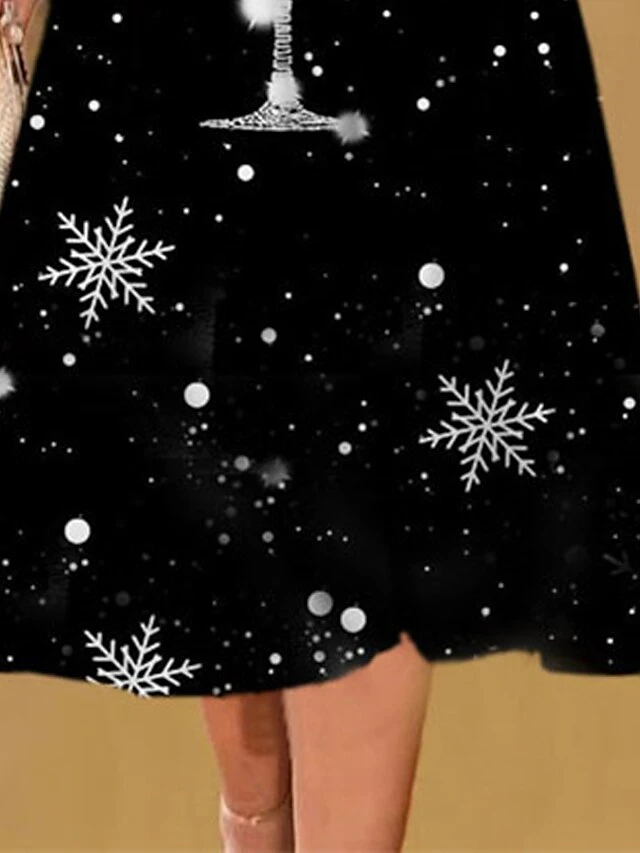 Women’s Christmas Casual Dress Shift Dress Midi Dress Black 3/4 Length Sleeve Snowflake Ruched Winter Fall Autumn Fashion Christmas Daily 2022 S M L XL XXL 3XL