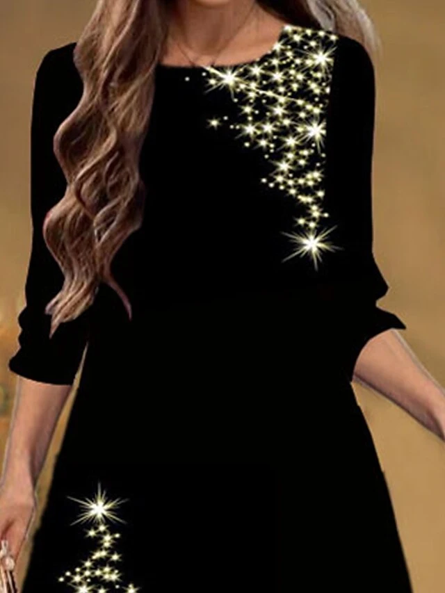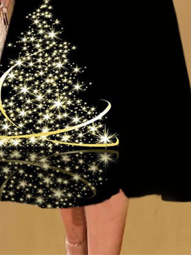 Women’s Christmas Casual Dress Shift Dress Midi Dress Black 3/4 Length Sleeve Tree Ruched Winter Fall Autumn Fashion Daily 2022 S M L XL XXL 3XL