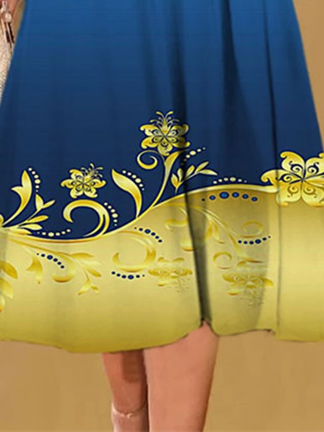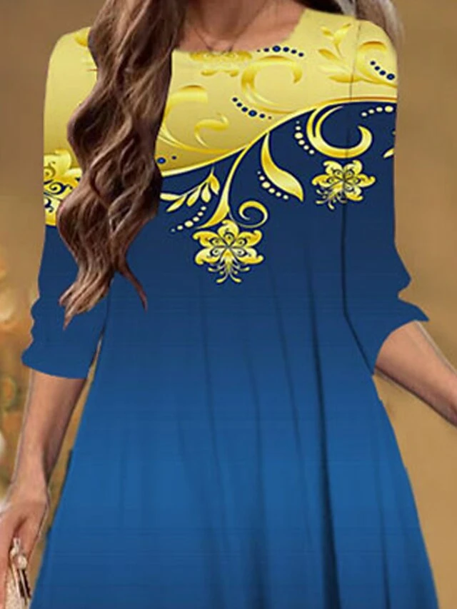 Women’s Christmas Casual Dress Shift Dress Midi Dress Blue 3/4 Length Sleeve Floral Ruched Winter Fall Autumn Fashion Christmas Daily 2022 S M L XL XXL 3XL