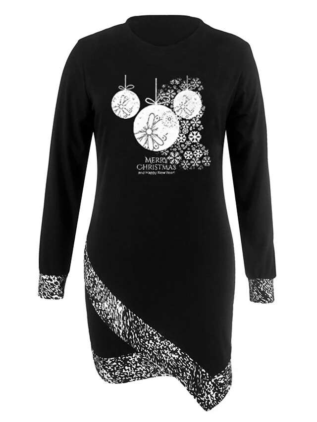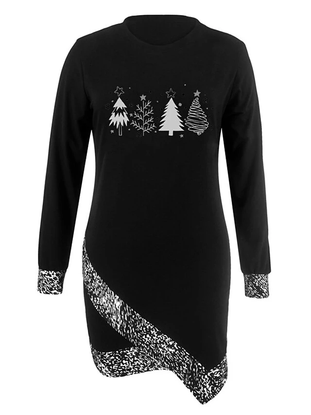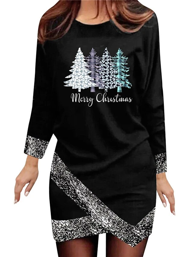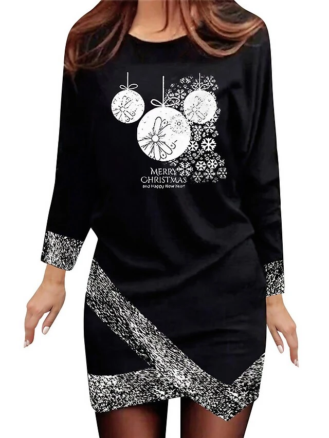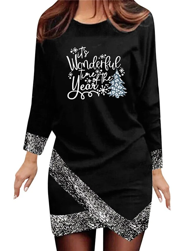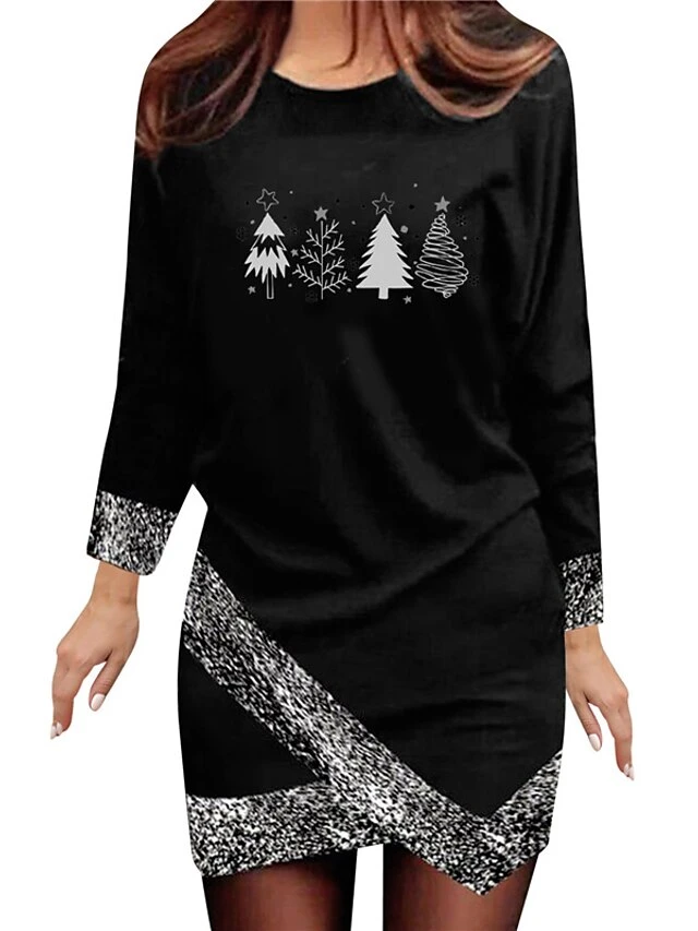 Women’s Christmas Casual Dress Shift Dress Mini Dress Black Silver Gray Long Sleeve Plaid Print Winter Fall Autumn Crew Neck Loose Fit 2022 S M L XL XXL 3XL