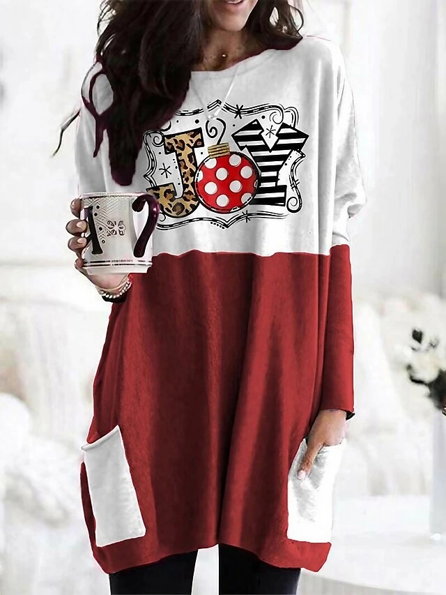 Women’s Christmas Casual Dress Shift Dress Mini Dress Red Long Sleeve Polka Dot Pocket Winter Fall Autumn Crew Neck Fashion Date Loose Fit 2022 S M L XL XXL 3XL
