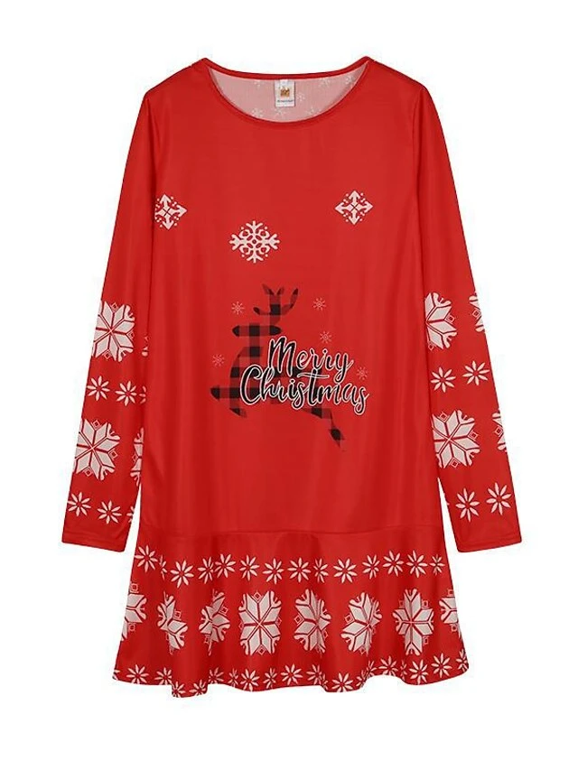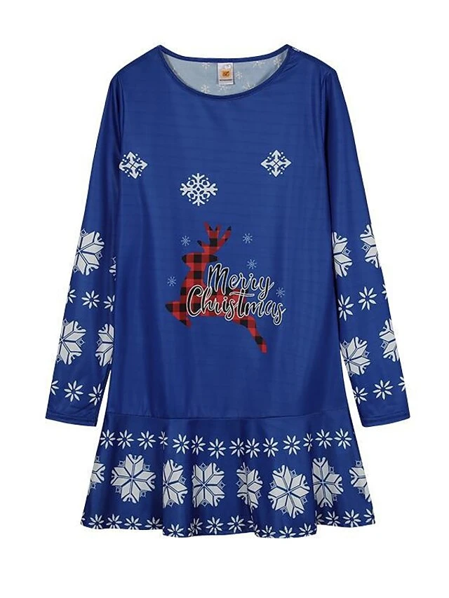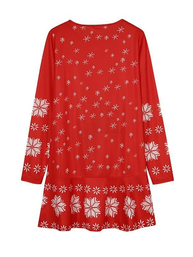 Women’s Christmas Casual Dress Shift DressShort Mini Dress Black Blue Red Long Sleeve Animal Snowflake Print Fall Winter Crew Neck Fashion Casual Loose Fit 2022 S M L XL XXL 3XL