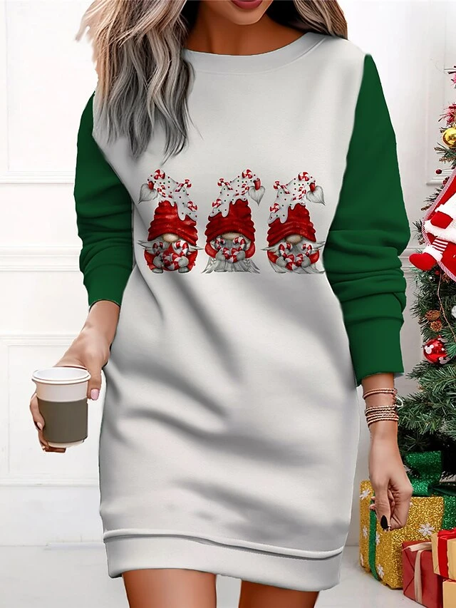 Women’s Christmas Casual Dress Sweatshirt Dress Mini Dress Warm Fashion OutdoorVacation Crew Neck Print Geometric Santa Claus Loose Fit Wine Red Burgundy S M L XL XXL