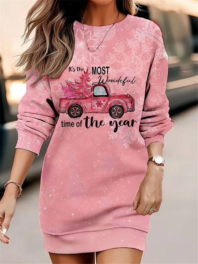 Women’s Christmas Casual Dress Sweatshirt Dress Mini Dress Warm Fashion OutdoorVacation Crew Neck PrintTree Loose Fit Pink Rusty Red Red S M L XL XXL