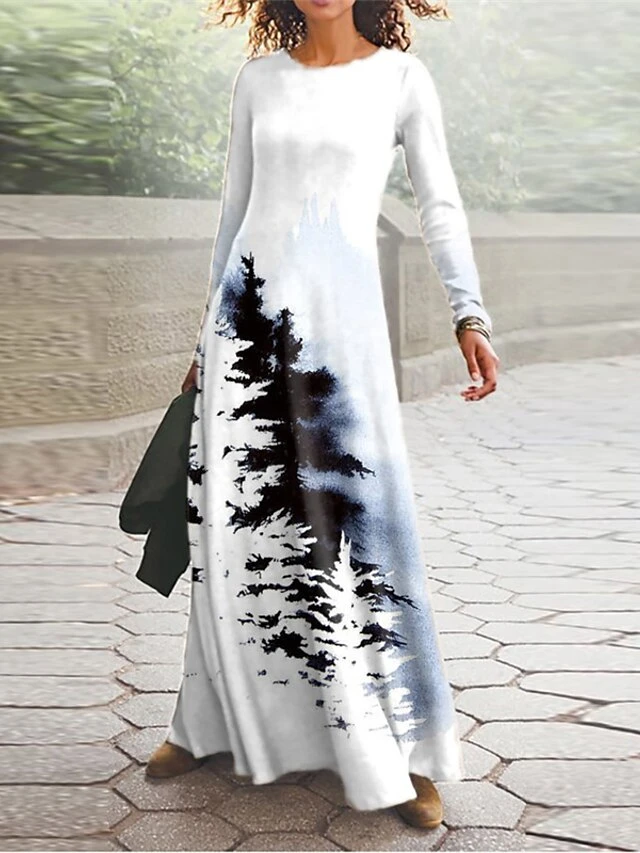 Women’s Christmas Casual Dress Swing Dress Blue Gray White Long Sleeve Snowman Tree Pocket Print Winter Fall V Neck Vacation Casual Fall Dress 2022 S M L XL XXL 3XL / Winter Dress