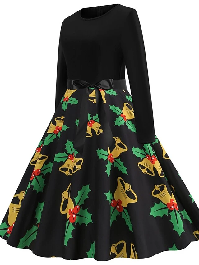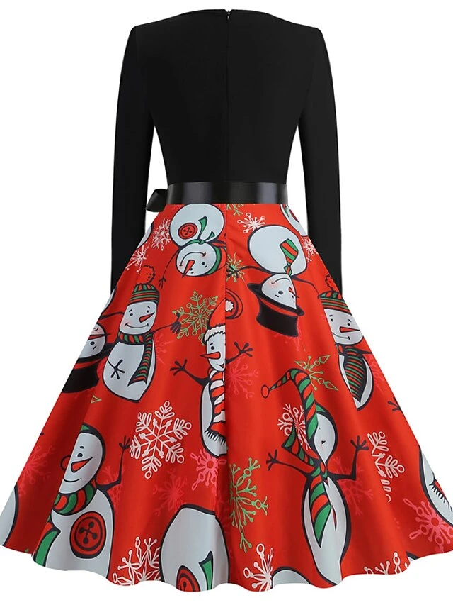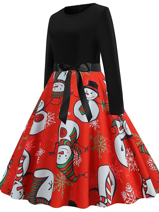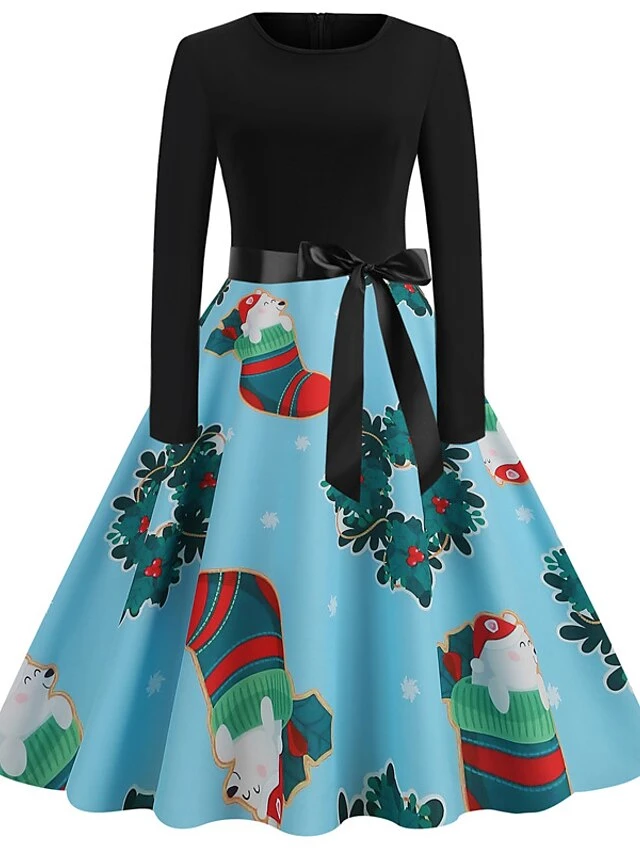 Women’s Christmas Casual Dress Swing Dress Vintage Dress Midi Dress Green Blue Light Red Long Sleeve Santa Claus Bow Winter Fall Autumn V Neck Slim 2022 S M L XL XXL 3XL
