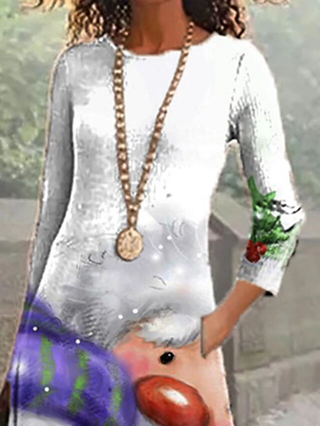 Women’s Christmas Casual Dress Swing Dress White Long Sleeve Santa Claus Pocket Winter Fall Autumn Crew Neck Fashion Daily Vacation 2022 S M L XL XXL 3XL