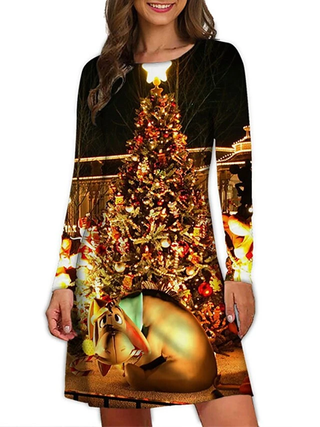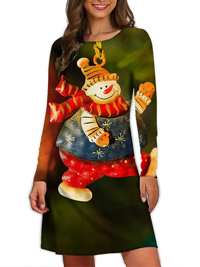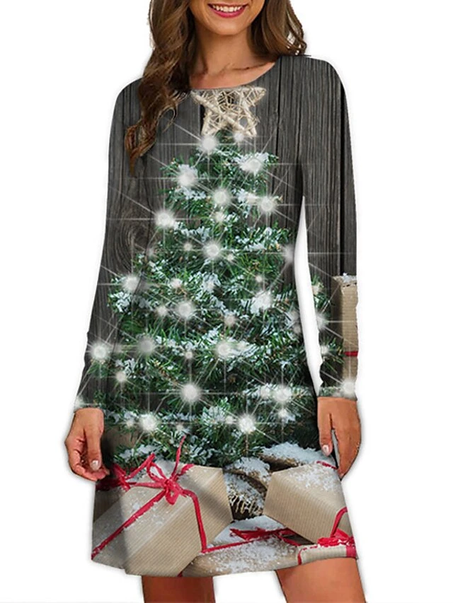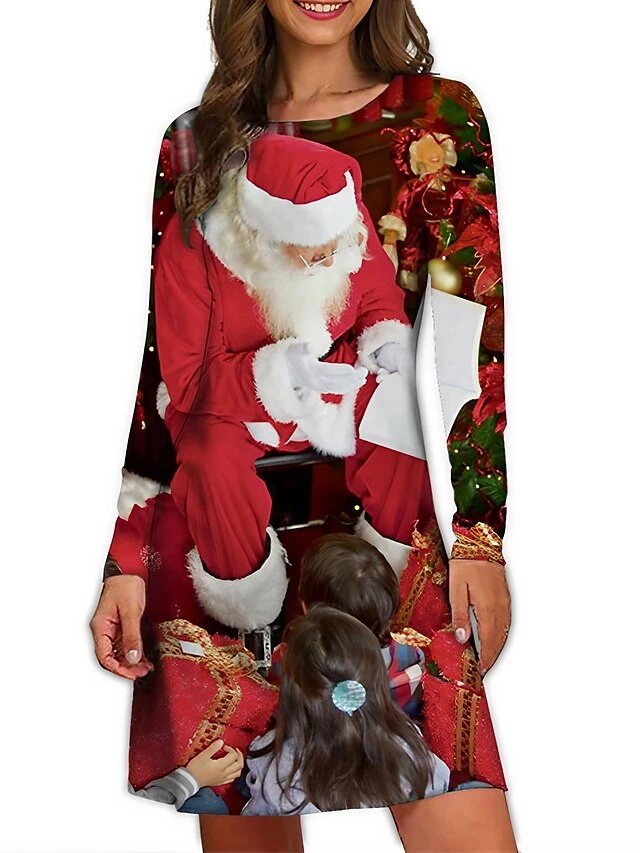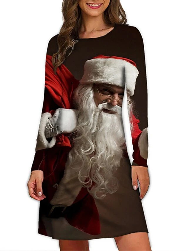 Women’s Christmas Casual Dress T Shirt Dress Tee Dress Mini Dress Black And White Green Black Long Sleeve Santa Claus Print Winter Fall Spring Crew Neck Fashion Daily Vacation Loose Fit 2022 S M L XL