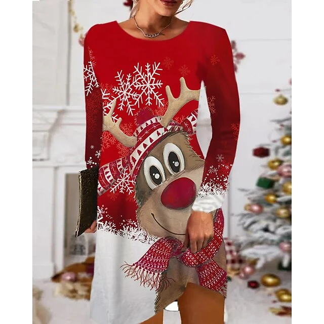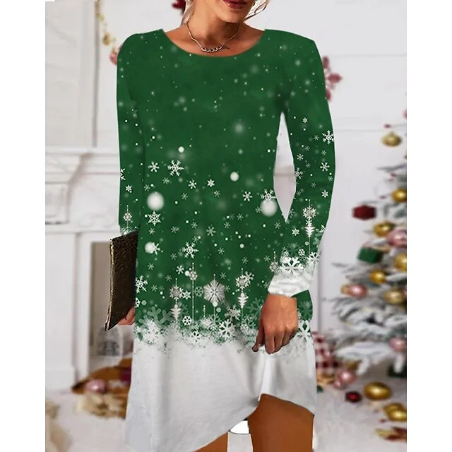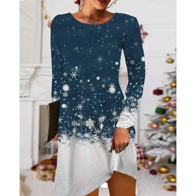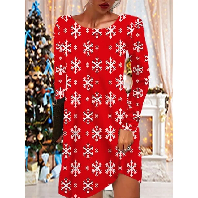 Women’s Christmas Casual Dress T Shirt Dress Tee Dress Mini Dress Black Blue Red Long Sleeve Tree Snowflake Pocket Print Winter Fall Crew Neck Vacation Casual 2022 S M L XL XXL 3XL