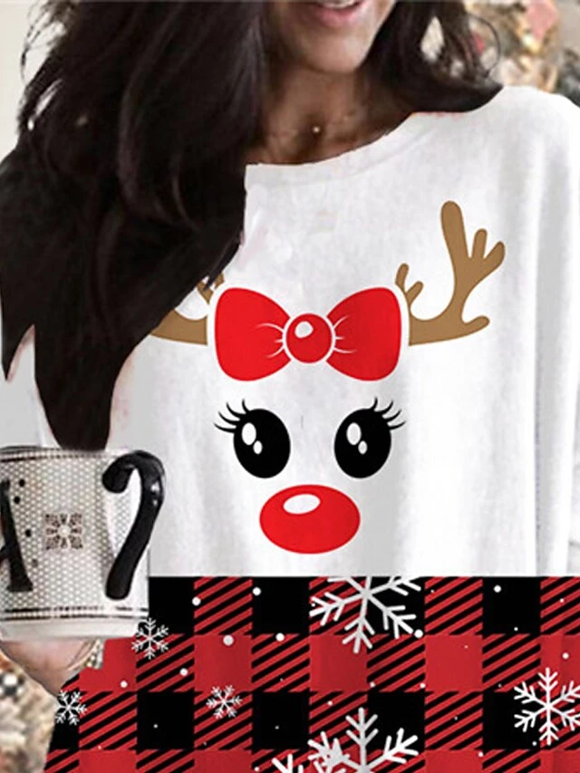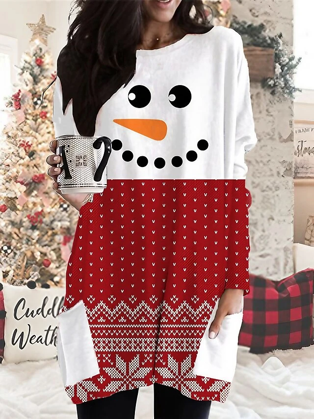 Women’s Christmas Casual Dress T Shirt Dress Tee Dress Mini Dress Wine Red Long Sleeve Plaid Snowman Snowflake Pocket Print Winter Fall Crew Neck Vacation Casual 2022 S M L XL XXL 3XL