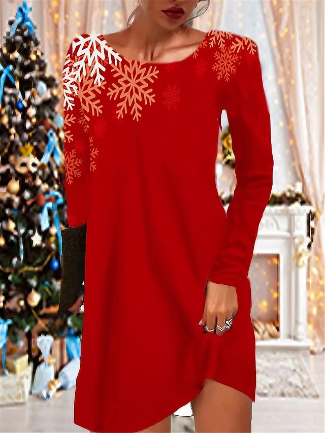 Women’s Christmas Casual Dress T Shirt Dress Tee Dress Shift Dress Mini Dress Black Wine Red Long Sleeve Letter Pocket Winter Fall Autumn Crew Neck Vacation 2022 S M L XL XXL 3XL / Print