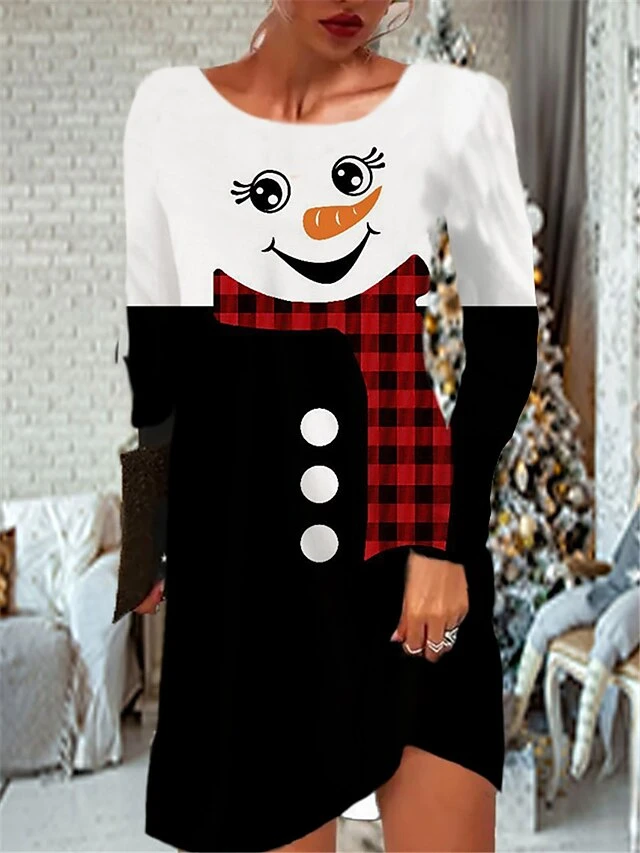 Women’s Christmas Casual Dress T Shirt Dress Tee Dress Shift Dress Mini Dress Blue Wine White Long Sleeve Butterfly Pocket Winter Fall Autumn Crew Neck Vacation 2022 S M L XL XXL 3XL / Print