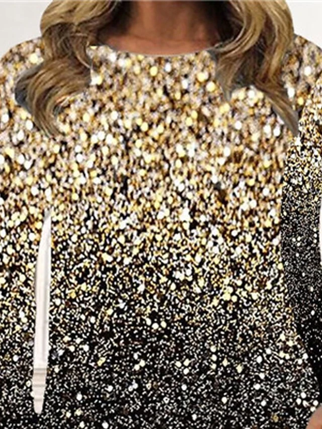 Women’s Christmas Casual Dress T Shirt Dress Tee Dress Shift Dress Mini Dress Gold Long Sleeve Color Gradient Pocket Winter Fall Autumn Crew Neck Fashion Christmas Daily 2022 S M L XL XXL 3XL