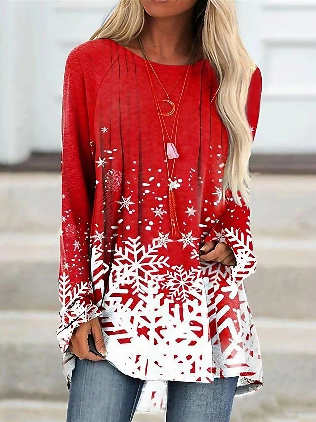 Women’s Christmas Casual Dress T Shirt Dress Tee Dress Shift Dress Mini Dress Green Black Red Long Sleeve Snowflake Print Winter Fall Autumn Crew Neck Fashion Daily Date 2022 XXS XS S M L XL XXL 3XL