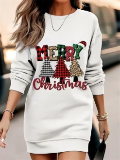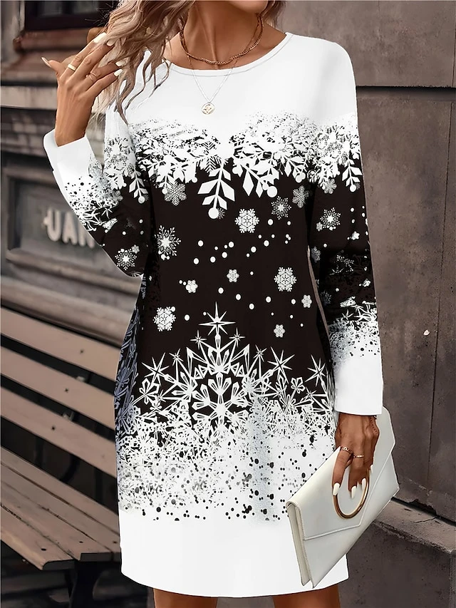 Women’s Christmas Dress Casual Dress Mini Dress Active Fashion Outdoor Christmas Holiday Crew Neck Print Christmas Tree Snowflake Loose Fit Black White Blue S M L XL XXL