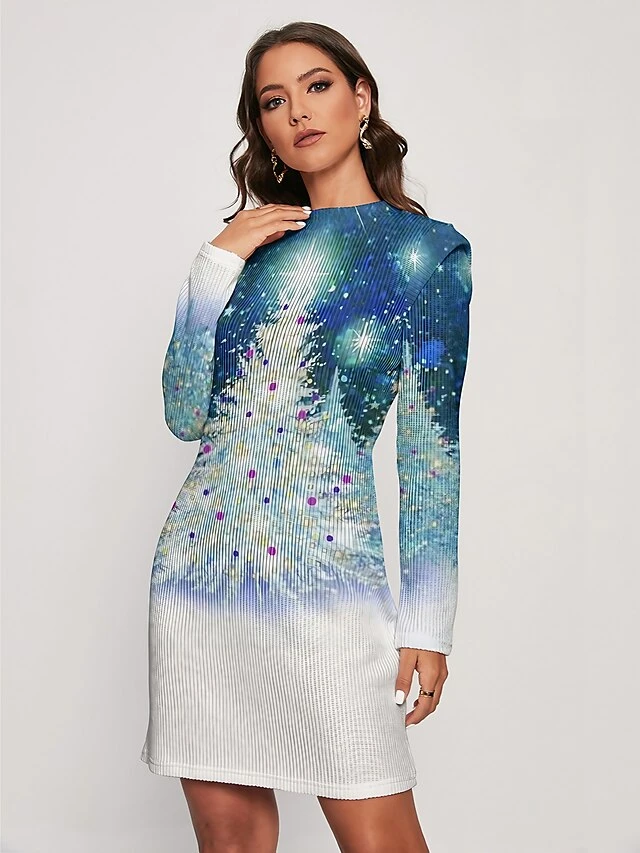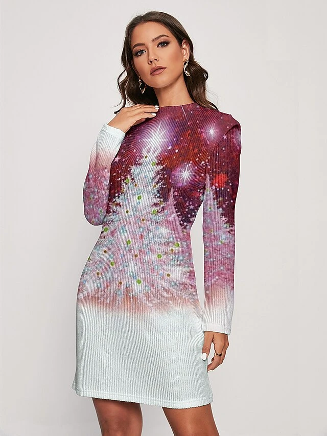 Women’s Christmas Dress Sweater Dress Jumper Dress Midi Dress Warm Christmas Tree Outdoor Christmas Daily Holiday Round Neck Long Sleeve 2023 Regular Fit Red Blue Purple S M L XL XXL 3XL